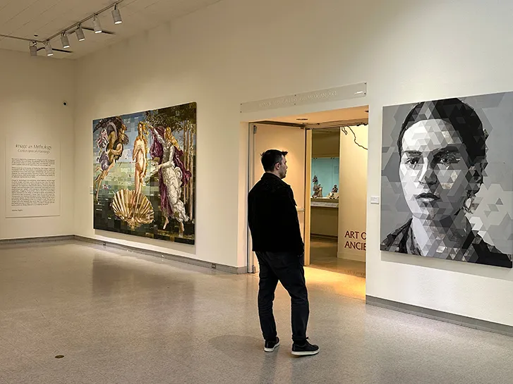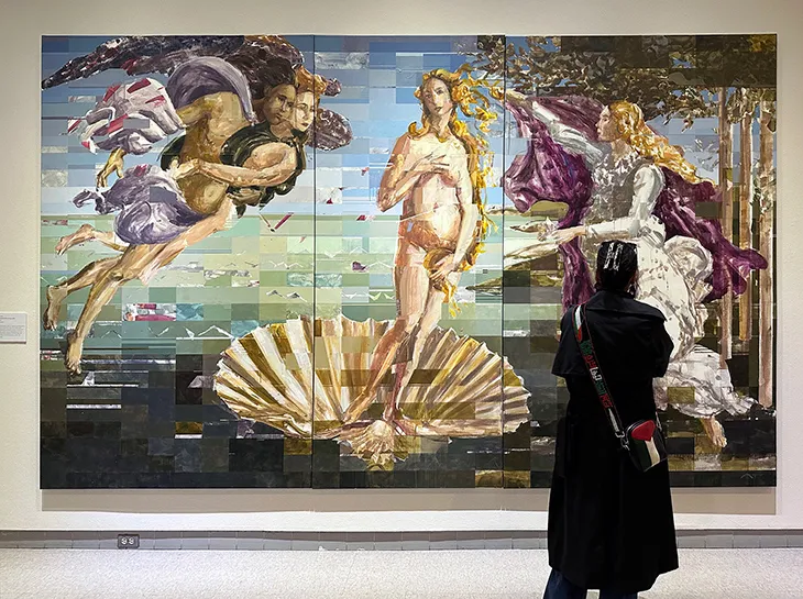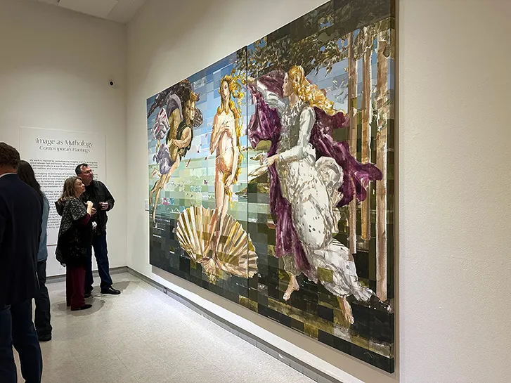“Image as Mythology is an exhibition which Azgour explores the various ways in which images have been used to tell stories over time. The works in the exhibition are diverse in their scope and include larger-than-life portraits of artists, an immense homage to Botticelli’s Birth of Venus, and abstracted outdoor scenes, but they all explore imagery in our contemporary sphere.