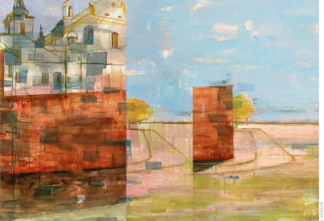Influenced by photography and the numerous ways images enter our personal space, my work examines how we see the world through the multifarious facets of reality and virtual reality. I use simple geometric patterns together with expressive applications of paint to represent the distortion of digital photography and the lack of clarity our memories provide. By pairing a variety of images together in seemingly incongruous ways and abstracting form in favor of ambiguity, my work attempts to challenge the viewer to create their own narrative.